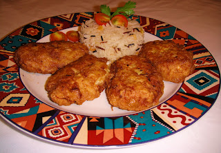 From the mixture form balls about the size of an egg and flat them with your palms, place them in to the flat platter.